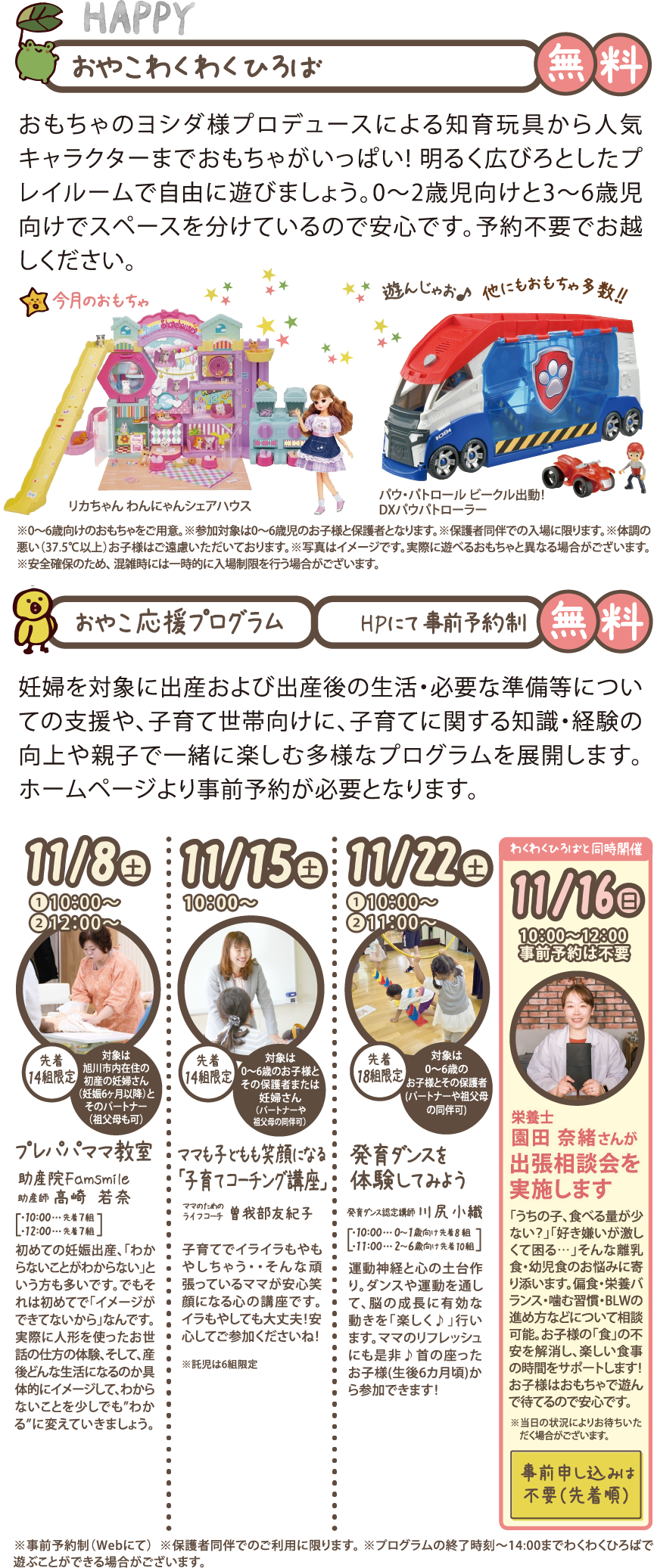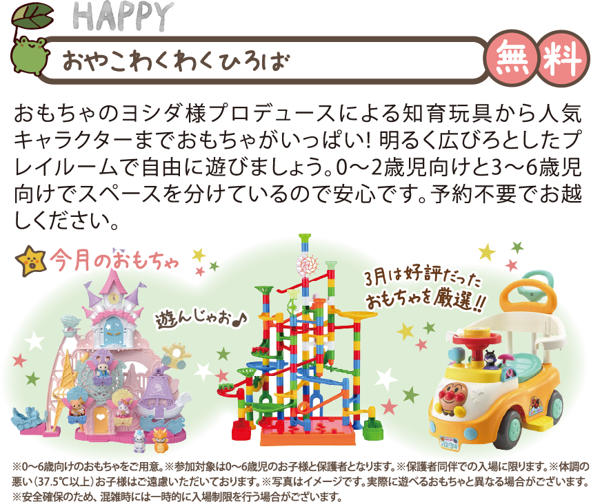 ※0~6歳向けのおもちゃをご用意。