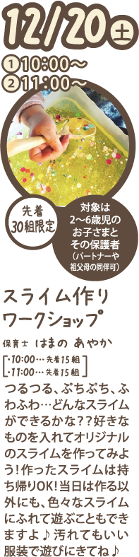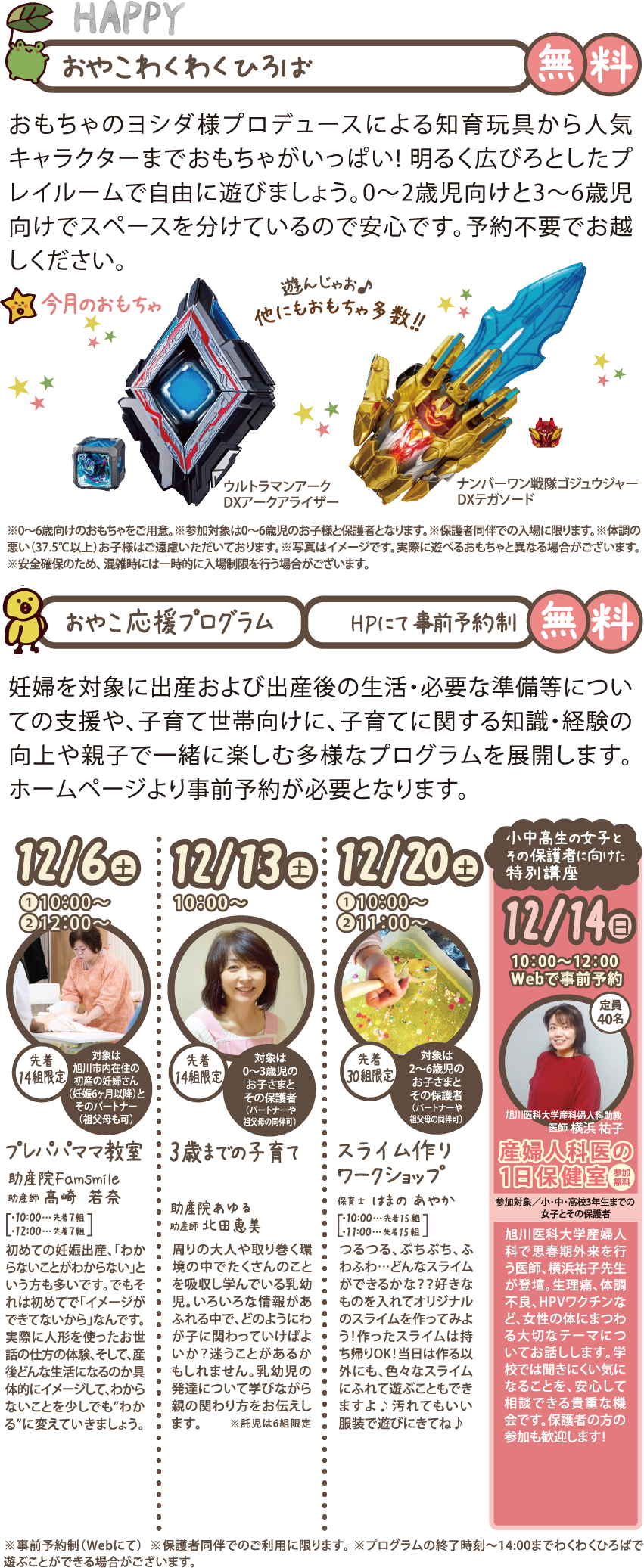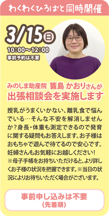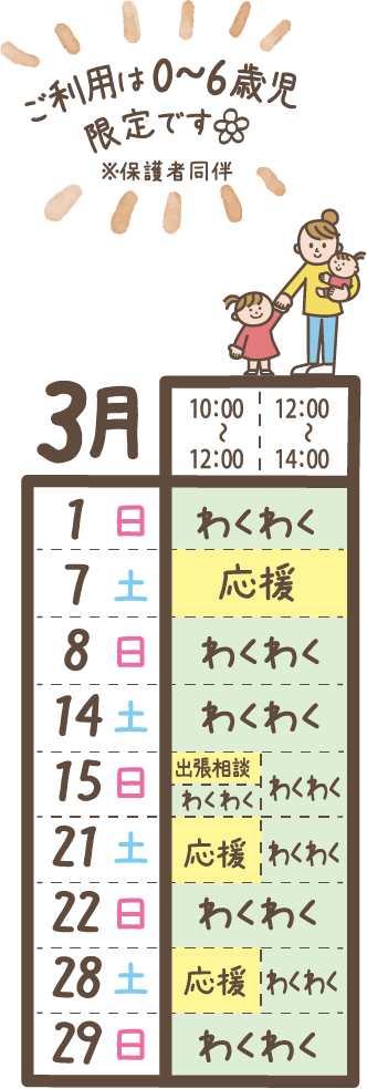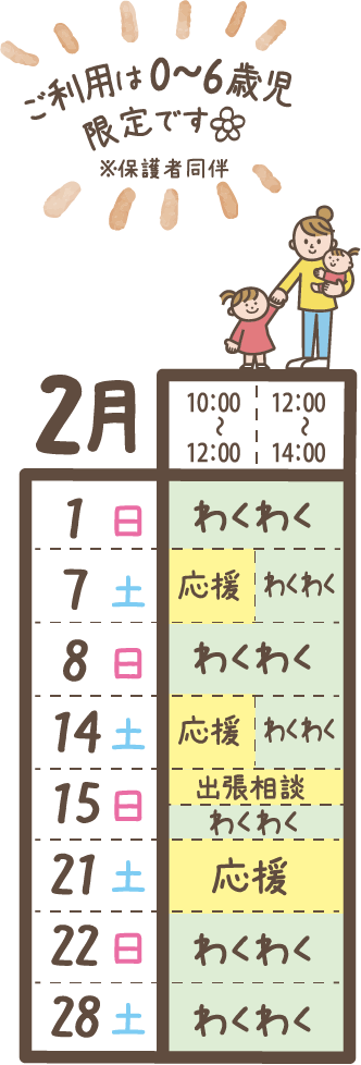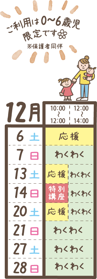 ※プログラムの終了時刻~14:00までわくわくひろばで遊ぶことができる場合がございます。